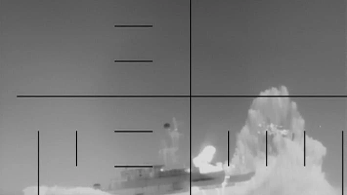 Пентагон опубликовал видеозапись, на которой зафиксирован момент поражения корабля торпедой.