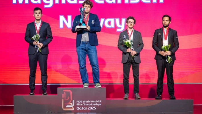 Норвежский гроссмейстер Магнус Карлсен стал чемпионом мира по блицу, победив на турнире в Дохе. В финале он встретился с представителем Узбекистана Нодирбеком Абдусатторовым и одержал победу со счетом 2,5:1,5.