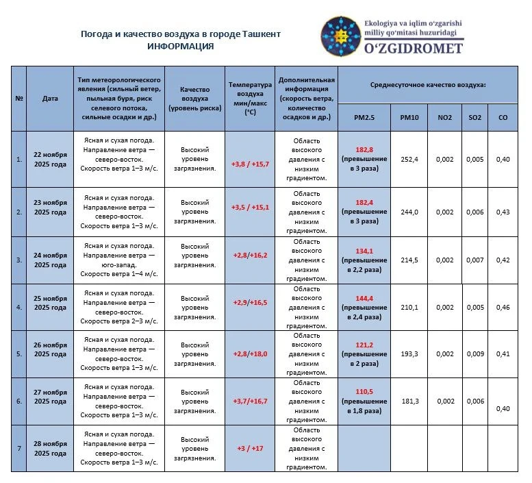 Температурная инверсия, способствующая повышению уровня загрязнения воздуха, сохранится в Узбекистане дольше первоначального прогноза. Об этом сообщил Узгидромет.