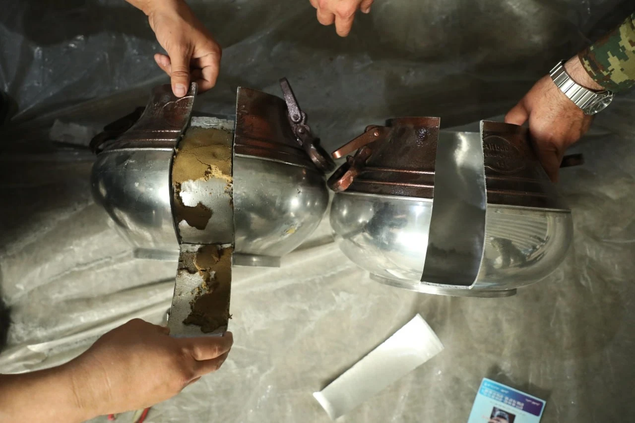 Подозрение вызвали результаты сканирования на досмотровом комплексе, после чего груз прошел дополнительную проверку. В ходе вскрытия 210 казанов с двойными стенками внутри было обнаружено наркотическое вещество.