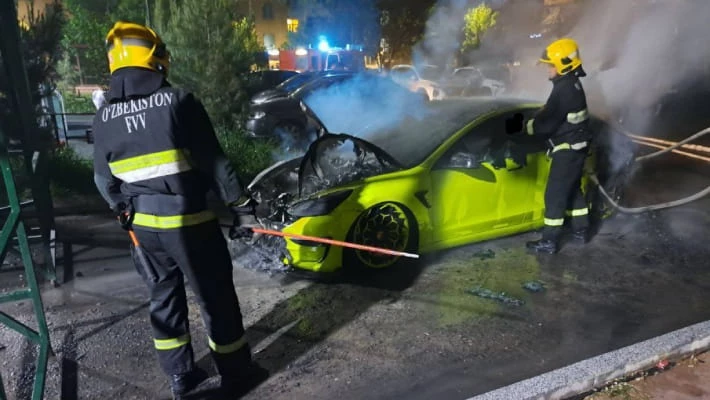 Ранее в городском УЧС сообщили, что в Мирзо-Улугбекском районе ночью 17 апреля загорелся электромобиль Tesla. Сигнал о возгорании в массиве Ялангач поступило в 23:51. Через пять минут на место прибыла пожарно-спасательная бригада, в 23:59 возгорание было ликвидировано. Пострадавших в результате инцидента нет.